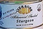 This 6-1/2 ounce can of alderwood SMOKED Wild Pacific Sturgeon, an all USA product, is caught and smoked here in Oregon.